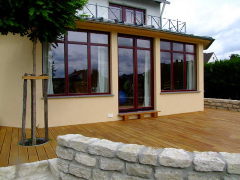 Natursteineinfassung einen großzügigen Sitzplatz mit Blick